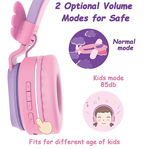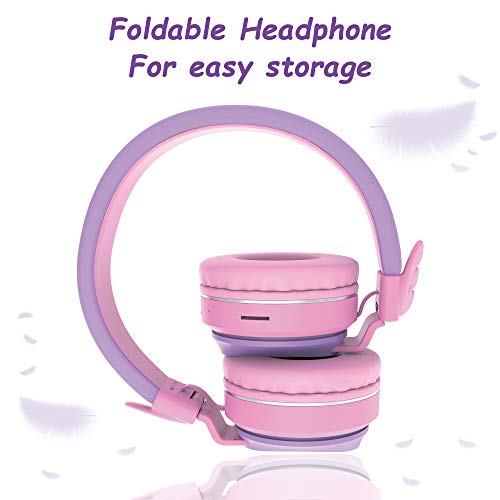 Riwbox BT05 Cuffie wireless Bluetooth per bambini, controllo del volume con limitazione a 85/103db, pieghevoli, con microfono e slot per card Tf, compatibile con iPad/iPhone/PCViola e rosa