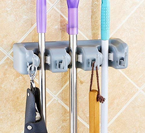 RIXOW Portascopa e Portaspazzole, Portascope Da Muro Montato, per Garage, Cucina, Cantina, 3 Posti e 4 Ganci Salvaspazio