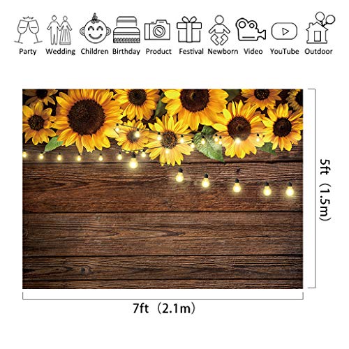 Riyidecor, fondale rustico in legno con girasoli per bambini, marrone chiaro e giallo, decorazione per feste e servizi fotografici, 2,1 x 1,5 m, panno in vinile