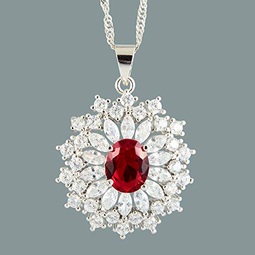 RIZILIA Collana a Forma di Ciondolo con Ciondolo Placcato Oro Bianco simulato Rosso Rubino e Rubino 18 carati