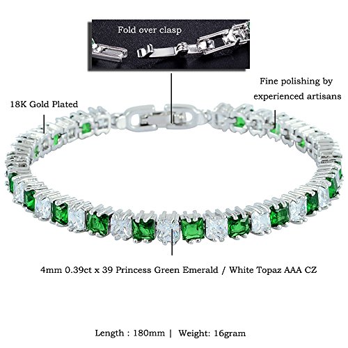 Rizilia Cubetto Di Ghiaccio Princess Cut Simulata Smeraldo Verde CZ 18K Placcato In Oro Bianco Bracciale Tennis, [18cm/7inch]