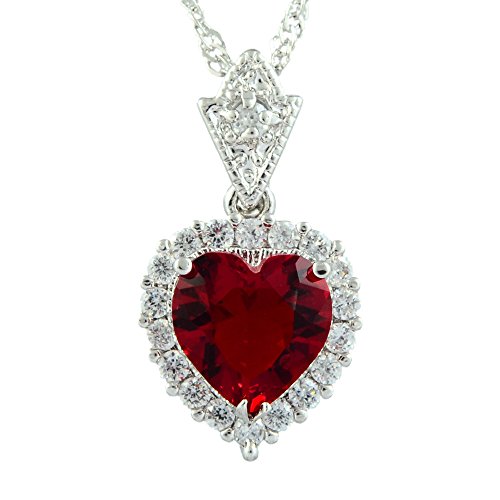 Rizilia Cuori Pendente con 18" Catena & Taglio del Cuore CZ [Simulata Rosso Rubino] in Placcato in Oro Bianco, Semplice Ed Elegante Moderno