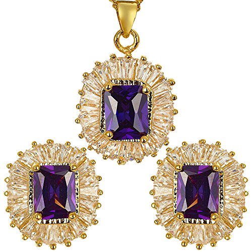 RIZILIA FIORIRE Parure di Gioielli Pendente con 18" Catena & Perno Orecchini Taglio Rotondo CZ [5 Colori Disponibili] in Placcato Oro Giallo, Semplice Ed Elegante Moderno