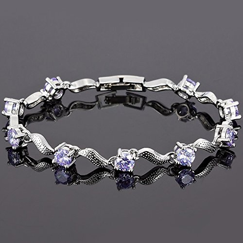 Rizilia Gioielli rotondo a forma di pietra dure di Birthstone pietra preziosa fine [170mm / 6.7inch] Tennis sottile Piccolo braccialetto semplice eleganza moderna [sacchetto di gioielli liberi]