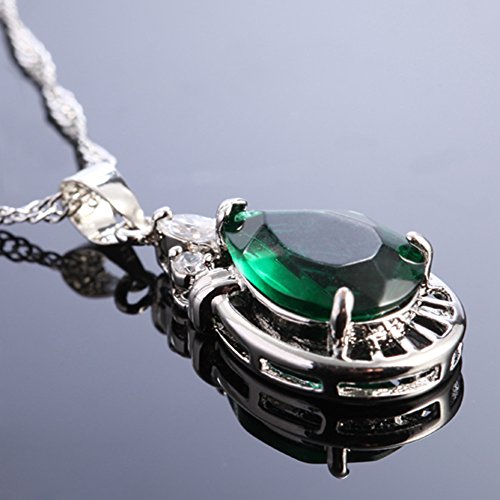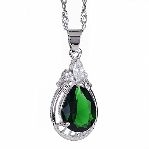Rizilia Pendente con 18" Catena & Taglio Pera CZ [Simulata Smeraldo Verde] in Placcato in Oro Bianco, Semplice Ed Elegante Moderno