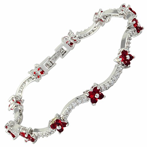 Rizilia Taglio Rotondo Simulata Rosso Rubino CZ 18K Placcato Oro Bracciale Tennis, [18cm/7inch]
