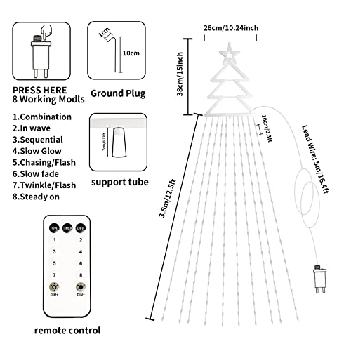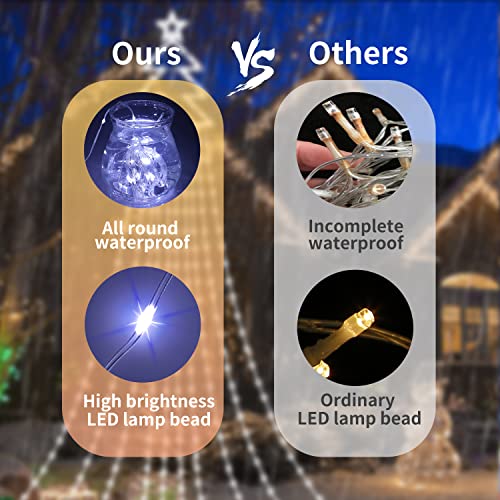 【Luce per albero di Natale con stella】RJEDL Catena Luminosa lluminazione Nataliziacon forma di stella sulla parte superiore, 38 cm di lunghezza e 26 cm di larghezza, come una corona. Fili di luce appesi come ciondolo a martello dell'albero di Natale, ogni filo di luce è lungo 3,8 m, 42 led ciascuno, 10 strisce in totale, 420 led, viene fornito anche con una spina di cavo da 5 m in modo da poter installare una gamma più ampia.È la scelta migliore per la decorazione dell'albero di Natale.