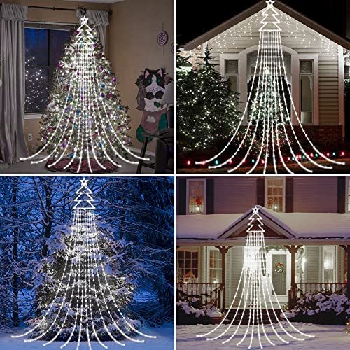 RJEDL Luci di Natale con Stella, 420LED Impermeabile Luci Albero di Natale, 10 * 3.8m Catena Luminosa Luci Natalizie Esterno, 8 Modalita Luci Decorazioni per Finestra, Giardino, Albero,Terrazza