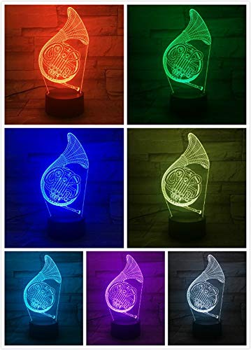 RJGOPL usb 3D Led Luce notturna Corno Francese Multicolor Rgb Ragazzi Bambino Bambini Regali per bambini Strumento musicale Atmosfera Lampada da tavolo Comodino