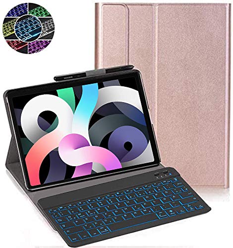 RLTech Tastiera Custodia per iPad Air 4 10.9 2020, [Italiana Layout] 7 Colori Backlit Tastiera Wireless Con Custodia Protettiva Per iPad Air 4 10.9 2020, Rosa oro