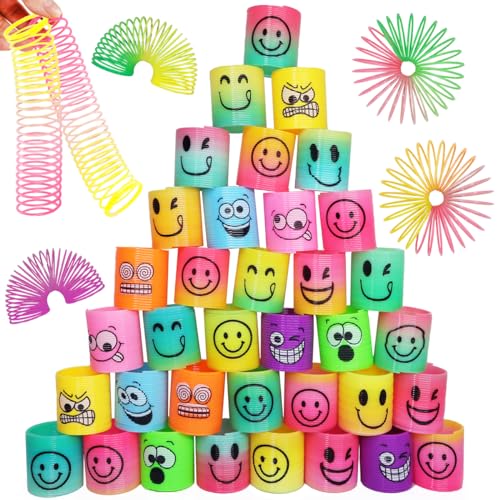 Rluobo 36 Pezzi Molle per Bambini, Molla Giocattolo Bambini, Molle Gadget Compleanno Bambini, Mini Smiley Spring per Regalini fine Festa, Regalo di Natale, Pinata Giochi Riempitivi (Colorato)