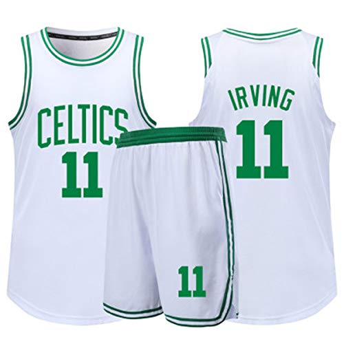 RLYJZ Celtics 11# Irving Maschio Pallacanestro Jersey, Femmina Bambino Gilet Senza Maniche + Pantaloncini Maglie Abito A Due Pezzi, Mezza Manica,Bianca,Child XS