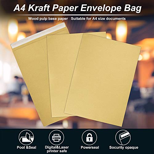 RMENOOR 50 Pcs Buste Carta kraft A4 Busta Lettera Vintage Buste con Chiusura Adesiva Buste da Lettera Marrone buste a sacco Marroni Formato A4 per Auguri Inviti Biglietti Fatti a Mano