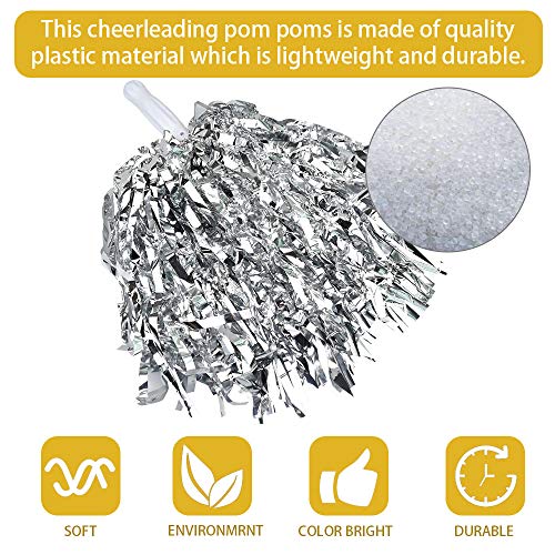 【Pacchetto di qualità eccellente】 Il pacchetto ha 12 pezzi di pompon cheerleader e ci sono 6 colori, rosa, verde, rosso, blu, oro, argento, ogni colore ha 2 pezzi. Un pacchetto include tutti i colori dei tuoi desideri. È un pacchetto super valore.
