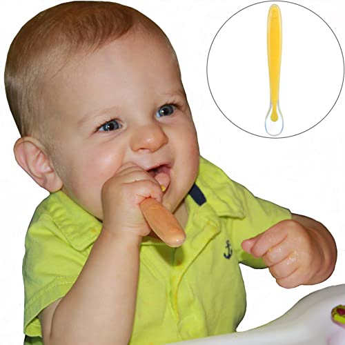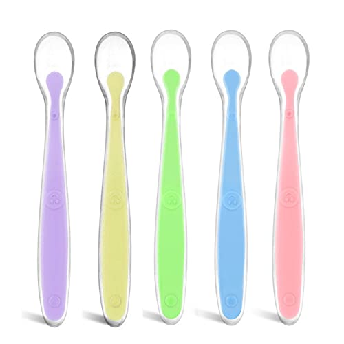 Rnitle 5Pcs Cucchiaio per Bambini, Cucchiaini In Silicone Per Neonati,Cucchiaino Silicone Neonato con Manico Lungo e Punta Morbida,Cucchiaio Per Porridge Di Riso