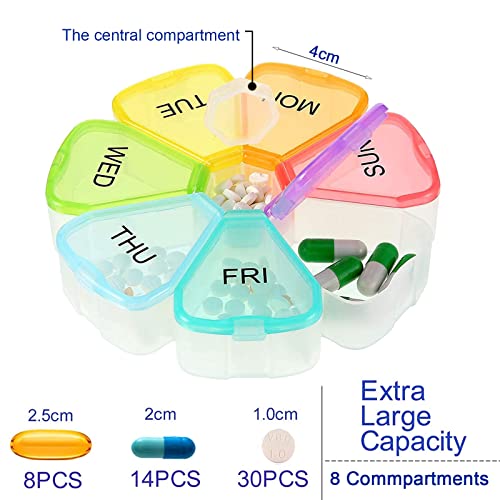 Rnitle 7 Day Pill Box,Weekly Pill Box Organiser,Pop Open Weekly Pill Box Case With 7 Large Compartments - Once a Day(Rainbow colors)