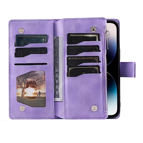 Rnrieyta Miagon Cerniera Portafoglio Custodia per iPhone 14,Magnetica Totem Fiore Goffratura Cover Protettiva Libro con Porta Carte Flip Caso con Cinturino da Polso
