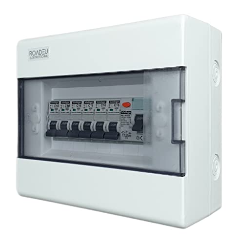 RoadEu - Interruttore di protezione del cavo - Interruttore di circuito Fi 40A 2P - C 16A fusibile automatico e C 10A 4+2 in una scatola di distribuzione a parete - Scatola dei fusibili a parete