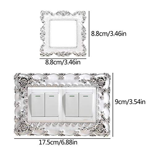 RoadLoo Adesivi Interruttore Plastica, 5 Pezzi Silver Interruttore Copertura Lusso Vintage Forma Quadrata Stikers Interruttore Adesivi Interruttore Singolo/Bifacciali Adesivi Decorazione della Casa
