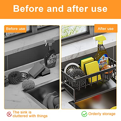 Perfetto organizer per lavello da cucina: il rack per spugna per lavello è ideale per organizzare o riporre spugne per piatti da cucina, scrubber per verdure, cuscinetti per piatti, tappi di scarico, sapone per piatti, raschietti per alimenti, spazzole, dispenser di sapone per le mani e altri accessori per lavare i piatti.