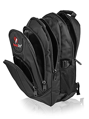 Roamlite Zaino per Scuola Impermeabile da Bambino e Bambina, Ideale per Ragazzo e Ragazza Disponibile in Vari Colori - 6 Tasche - Capacità 25 Litri - Colore NERO CON LOGO MULTICOLOR RL17KMCL