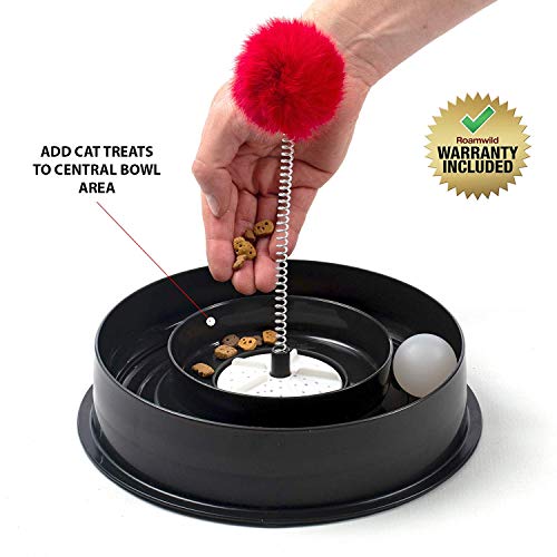 Roamwild 4 in 1 Gioca a Bowl Quiet Cat Toy Cats Interactive Gioca a Stimulating Ball Track Toy con Spring Pom-Pom Kitten Toys con Divertimento Spinning Catnip Odor Release