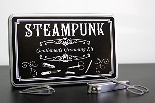 Robert Frederick Gentlemen' s 5 Piece Grooming Kit in Piatto Spazzolato Metallo - Steampunk, Assortiti