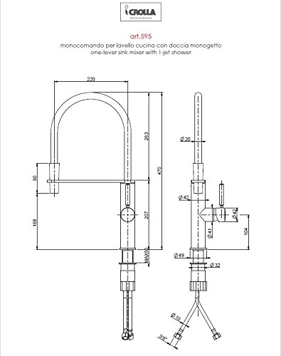 Monocomando lavello, finitura cromata, doccia monogetto estraibile
