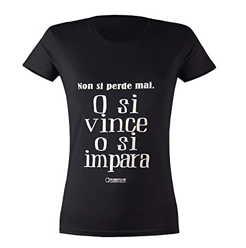 ROBERTO RE LEADERSHIP SCHOOL T-Shirt Donna | Non Si Perde Mai | Nero | Scritta Bianca | M