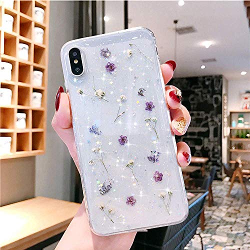 Robinsoni Cover Compatibile con iPhone X Custodia Flessibile iPhone XS Cover Silicone TPU Brillante Glitters Cover Caso Luminosa Crystal Custodia Fiori Stellati Ultra Morbido Cover per iPhone XS