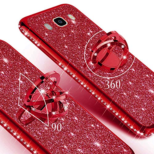 Robinsoni Cover Compatibile con Samsung Galaxy J7 2016 Custodia Flessibile Galaxy J7 2016 Silicone TPU Brillante Glitters Cover Rotante Squillare Supporto Custodia Sottile Gel Ultra Morbido Cover