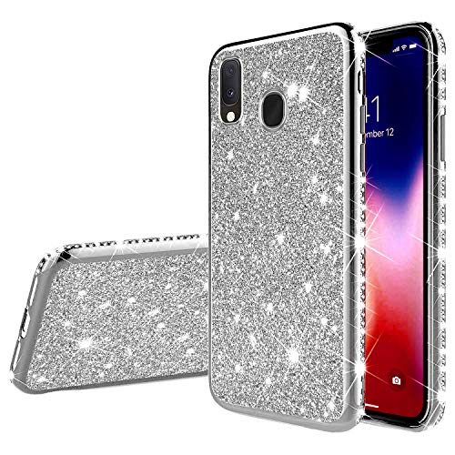 Robinsoni Cover Compatibile con Samsung Galaxy A20e Custodia Sparkle Bling Galaxy A20e Cover Silicone TPU Brillante Glitters Cover 360 Gradi Custodia Gel Ultra Sottile Diamante Cover Argento