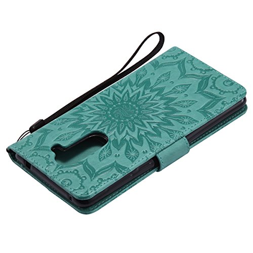 Robinsoni Custodia Compatibile con Huawei Honor 6X Cover Libro Folio a Fogli Mobili Cover Pelle Case Taccuino Cover Portafoglio Custodia Libretto Retro Flip Caso Magnetica Fiore Di Buddha Verde