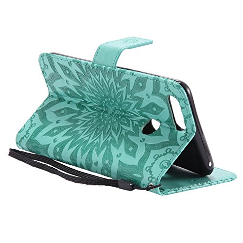 Robinsoni Custodia Compatibile con Huawei Honor 7X Cover Libro Folio a Fogli Mobili Cover Pelle Case Taccuino Cover Portafoglio Custodia Libretto Retro Flip Caso Magnetica Fiore Di Buddha Verde