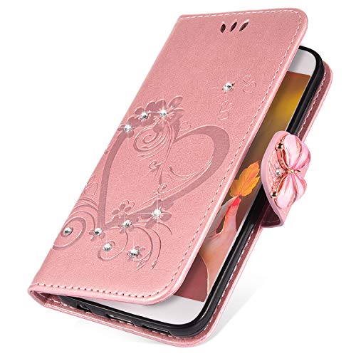 Robinsoni Custodia Compatibile con Samsung Galaxy A40 Case Libro Flip Galaxy A40 Cover Portafoglio Custodia Pelle PU Antiurto Case Taccuino Cover Libretto Caso Magnetica Case con Diamante Farfalla