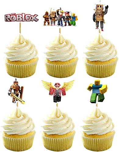 【Il pacchetto include】 1 pezzo di toppers per torta roblox, 24 toppers per torta, 1 banner di buon compleanno roblox, 20 palloncini in lattice roblox.