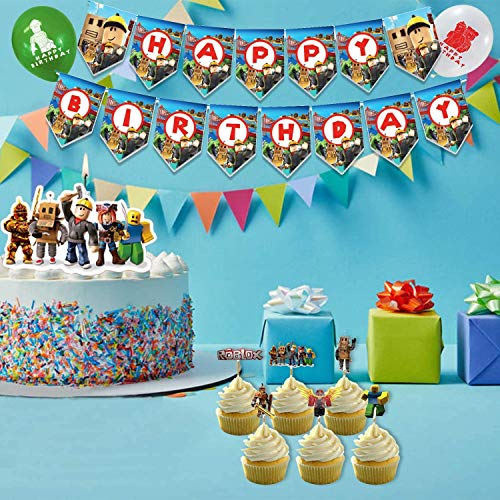 Roblox Decorazioni per Feste di Compleanno con Scheda Inserto per Torta Bandiera Palloncini Roblox Forniture per Feste di Compleanno Festa a Tema di Videogiochi Anime Il