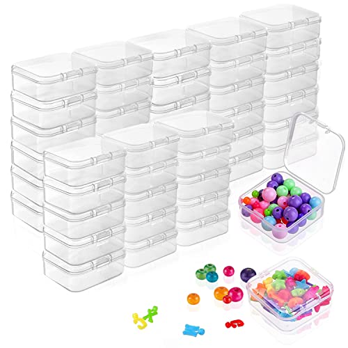 RobLuX 40 Pezzi Mini Scatola Plastica Piccole Quadrato Scatole Plastica Trasparente Scatole Plastica con Coperchio Piccole per Gioielli Deposito Piccoli Oggetti (1,77*1,77*0,75 in/4,5*4,5*1,9cm)