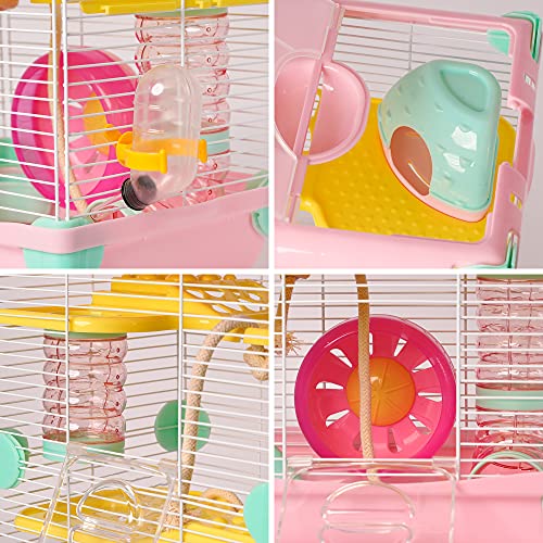 Roborowski - Gabbia per criceti, 27.7*20.5*42.5cm, gabbia per criceti, 2 piani con ruote, abbeveratoio, mangiatoia, colore: rosa