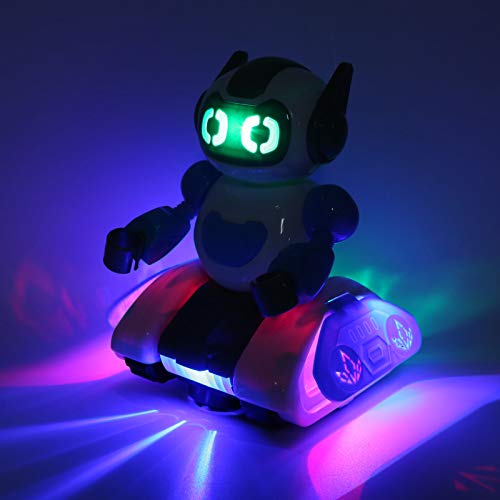 【Altre funzioni】 Ruotabile a 360 °, il robot camminerà in posizione verticale con musica e luce e ruoterà di 360 gradi sul posto e i paralumi su entrambi i lati del robot si accenderanno automaticamente durante la rotazione.