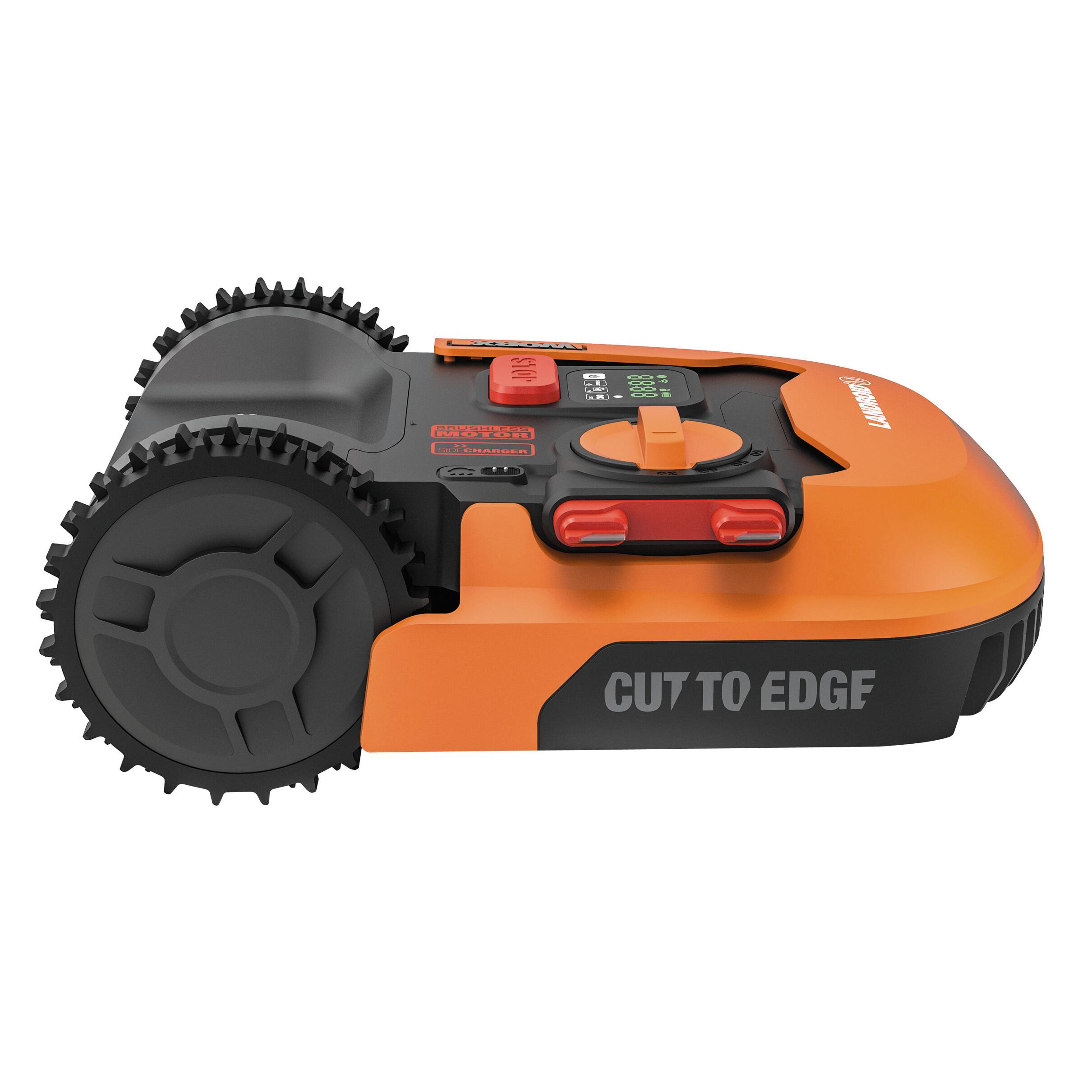 1 batteria litio 20 V 2,0 Ah,, larghezza di taglio 18 cm, altezza di taglio da 30 a 60 mm. Adatto a superfici fino a 500 m². Ideale per pendenze fino al 35%. Ricarica automatica. batteria staccabile e condivisibile con altre macchine da giardino. Taglio fino al bordo