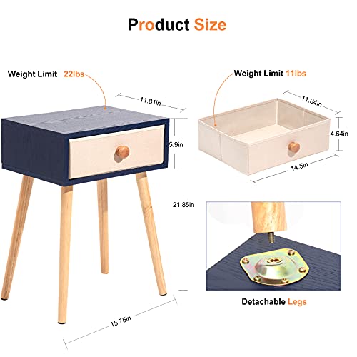 Robotime Tavolino per Soggiorno Comodino in Legno con 1 Cassetto in Tessuto, Comodino Comodino per Soggiorno, Mobili per Camera da Letto