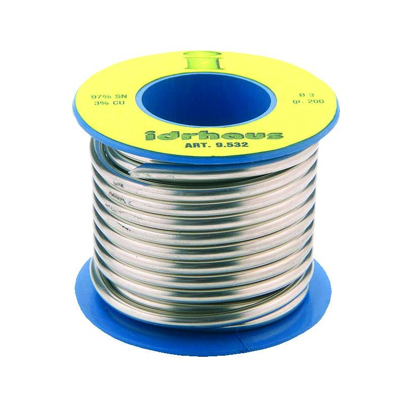 Sn 97%, cu 3% - 200 g Saldante in filo di stagno e rame Ø 3: idoneo per impianti in rame di acqua fredda, calda e gas. Composizione: sn 97% cu 3%. Ø 3, L-CU3 sn, temperatura di fusione 230-250 C°.