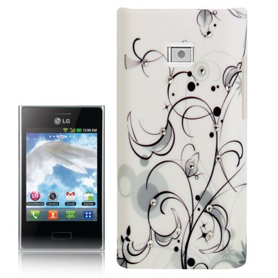 Rocina HardCase Strass stile con peduncolo e foglie in grigio bianco per LG E400 Optimus L3
