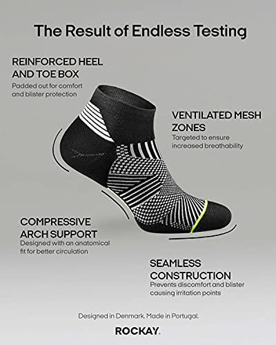 ROCKAY Flare Calzini Running per Uomo e Donna, con Cuscinetti, Taglio a Mezzo Polpaccio, Supporto per Arco Plantare, Materiale 100% Riciclato, Antiodore (1 Paio)