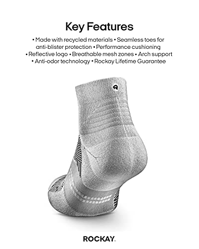 ROCKAY FLARE Calzini Running per Uomo e Donna, Con Cuscinetti, Taglio a Mezzo Polpaccio, Supporto per Arco Plantare, Materiale 100% Riciclato, Antiodore (1 Paio)