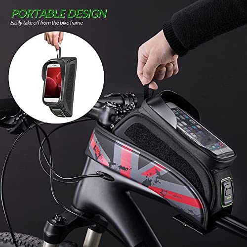 ROCKBROS Borsa da Telaio Bici MTB Impermeabile, Borsa Porta Cellulare per Bicicletta, Touch Screen Smartphone 5.8/6 Pollici, Facile Installazione, Grande capacità 1.6L, Accessori Bike