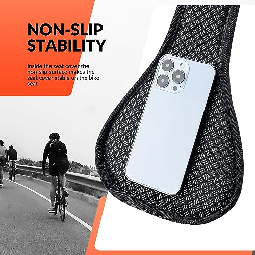 MATERIALE DI QUALITÀ: Questo coprisella per bici è realizzato in silicone e spugna spessa di memoria. Il silicone è altamente elastico per assorbire gli urti. La schiuma di memoria è morbida e comodo, non si deforma facilmente.
