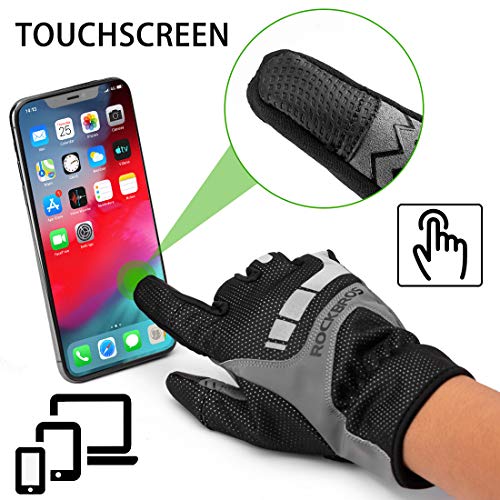 ROCKBROS Guanti Ciclismo Bici MTB Antivento Antiscivolo Touch Sensibile Strisce Riflettenti per Autunno Inverno Nero/Grigio Uomo Donna Unisex