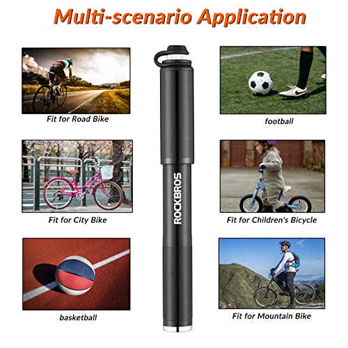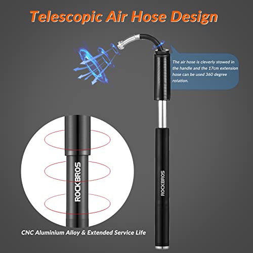 ROCKBROS Pompa Bicicletta Portatile Universale Pompetta per Bici MTB 160 PSI in Alluminio Adatta per Valvola Presta Schrader Ultraleggera Multifunzionale con Supporto e Ago per Palla